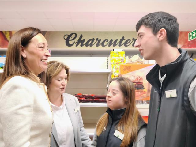 La Consejera ha estado acompañada por Nieves Doz, Blanca Castillo y Jesús Falceto, presidenta, gerente y psicólogo de Down Huesca respectivamente, que fue la primera entidad que implementó en la Comunidad Autónoma esta metodología de empleo con apoyo –conocida por sus siglas, ECA– en 1999. Ha estado presente en la visita Agustín Cabrero, adjunto a la gerencia de Cabrero e Hijos, que ha detallado la participación de la compañía oscense dentro del programa, y han contado su experiencia en primera persona Marcos y Andrea, que trabajan en uno de los supermercados Altoaragón, así como David, empleado en el Cash&Carry de la misma empresa; la mañana ha acabado con un encuentro con Gonzalo, en la carpintería Castellar.