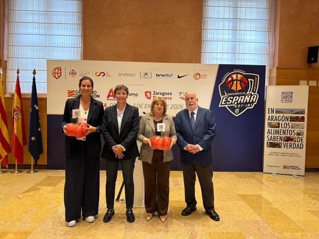 La consejera de Educación, Cultura y Deporte del Gobierno de Aragón, Tomasa Hernández, la directora general de Deporte, Cristina García, la presidenta de la Federación Española de Baloncesto, Elisa Aguilar, y el presidente de la Federación Aragonesa de Baloncesto, José Miguel Sierra, han dado a conocer este miércoles el campeonato, que reunirá a las 19 selecciones autonómicas, con los equipos masculino y femenino de infantil y cadete de cada una de ellas.