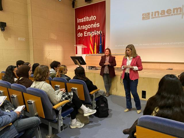 La consejera Pérez Forniés visita el INAEM para saludar a los 40 alumnos del grado de Trabajo Social de la Universidad de Zaragoza, que hoy han trasladado una de sus clases a la sede del Instituto Aragonés de Empleo