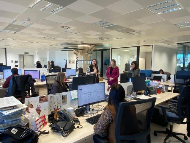 Durante su visita a la sede, la consejera en funciones ha saludado a la directora de Espacio Empresas, Susana Navarrete, así como al resto del equipo, que le han trasladado como han trabajado a lo largo del pasado año, y su constante impulso al talento en conexión con el tejido empresarial.