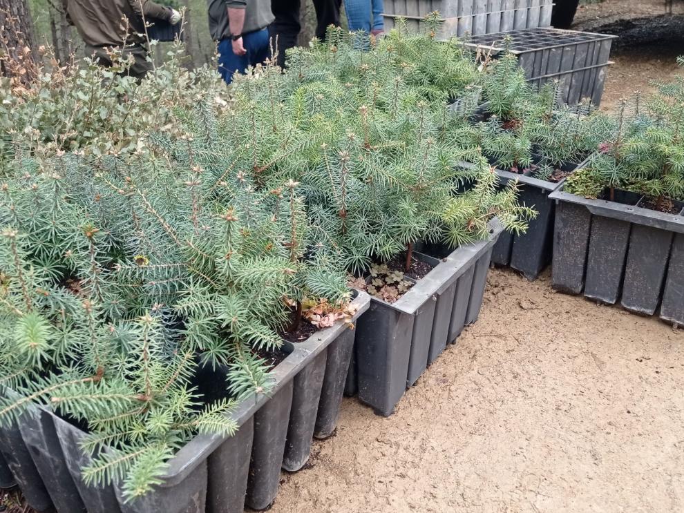 Blasco plantando uno de los pinsapos procedentes de Andalucía en Orcajo.