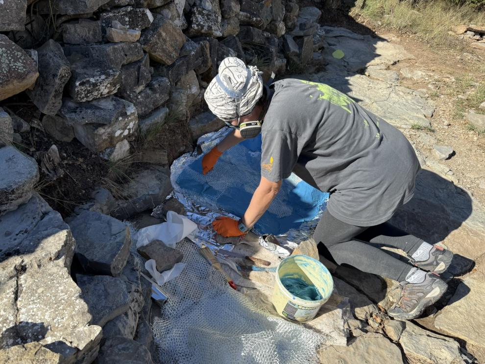 Proceso de realización de moldes de silicona de algunos de los huesos de pterosaurio y huellas de dinosaurio del yacimiento “El Pozo” (Teruel).