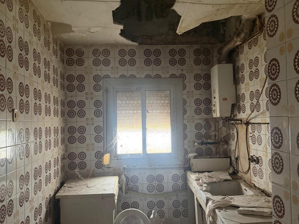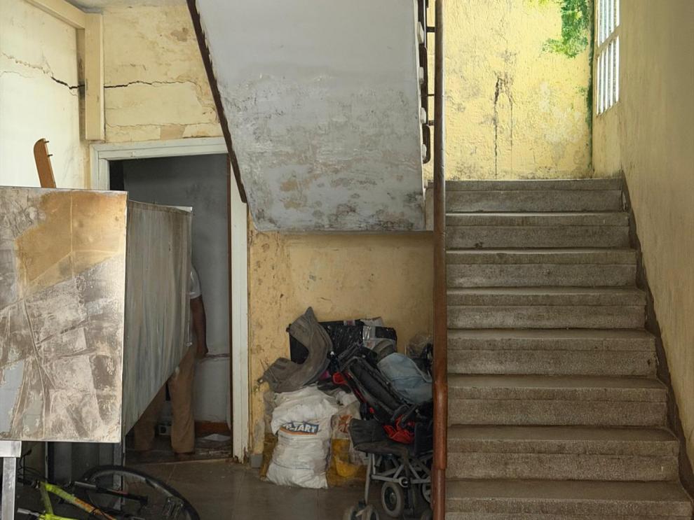 Varias imágenes del edificio en riesgo de derrumbe en Caspe y sus inmediaciones -