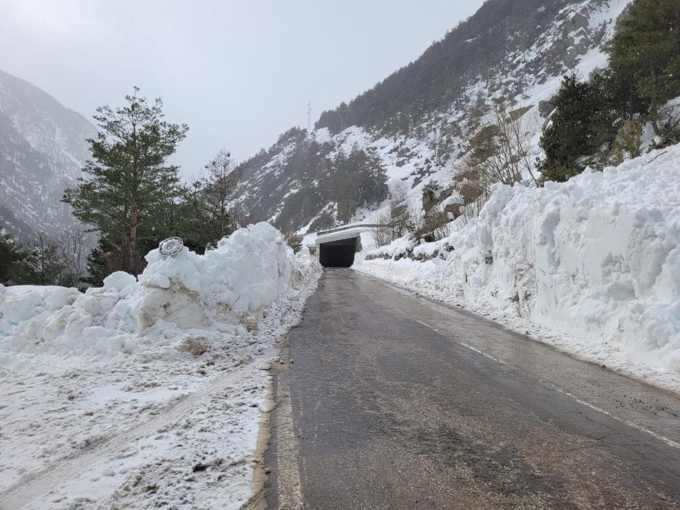 Punto de la A-2606 donde el alud cortó la calzada.