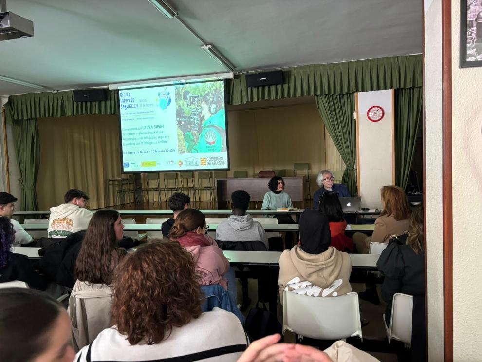 Un momento de la actividad organizada por el Gobierno de Aragón, en el IES Sierra de Guara de Huesca, con motivo del Día de Internet Segura