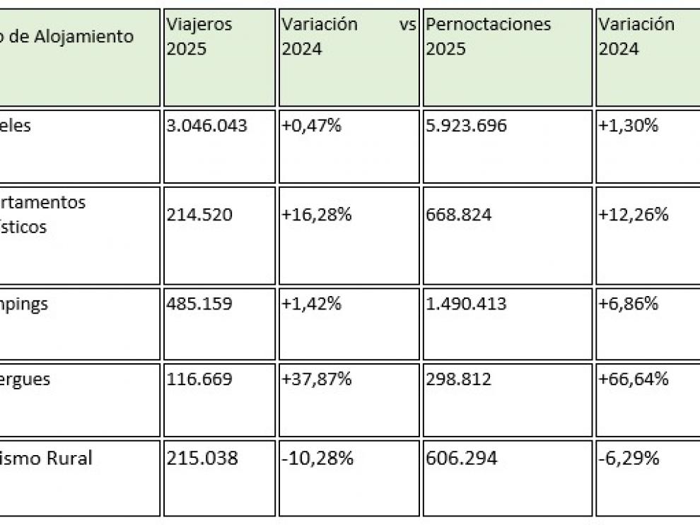 Datos por tipologías de alojamientos.