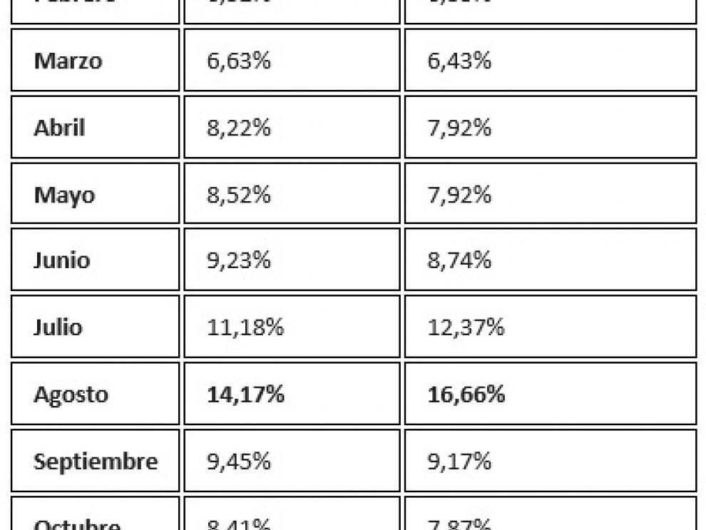 Porcentajes de ocupación y pernoctaciones por meses.