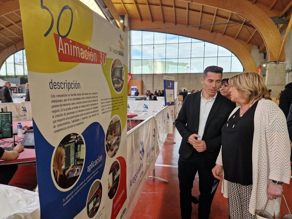 La consejera ha asistido hoy a las pruebas de las distintas modalidades que compiten en las Aragón Skills y ha conversado con alumnos y docentes.