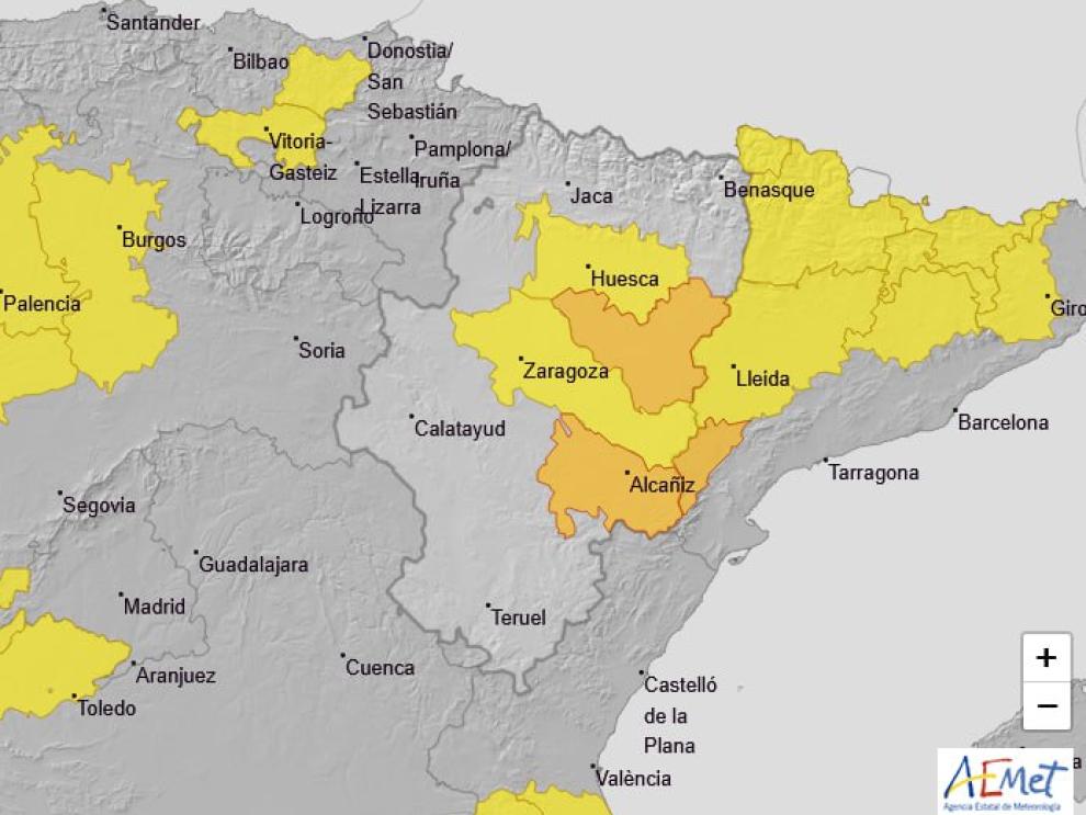 Aviso nivel naranja por tormentas en el sur de la provincia de Huesca y el Bajo Aragón.