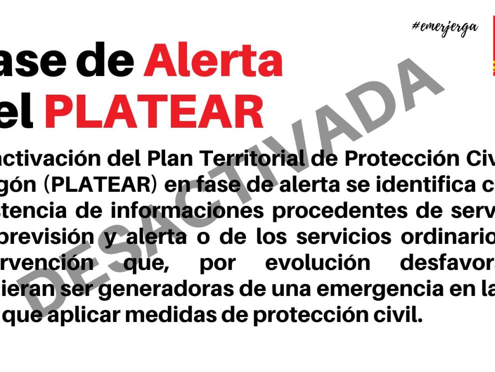 El Gobierno de Aragón desactiva el PLATEAR tras el apagón -
