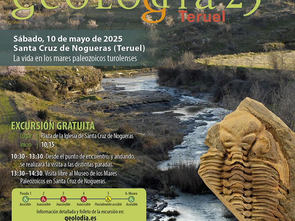 Cartel con la información básica del Geolodía 25 en Santa Cruz de Nogueras (Teruel). -
