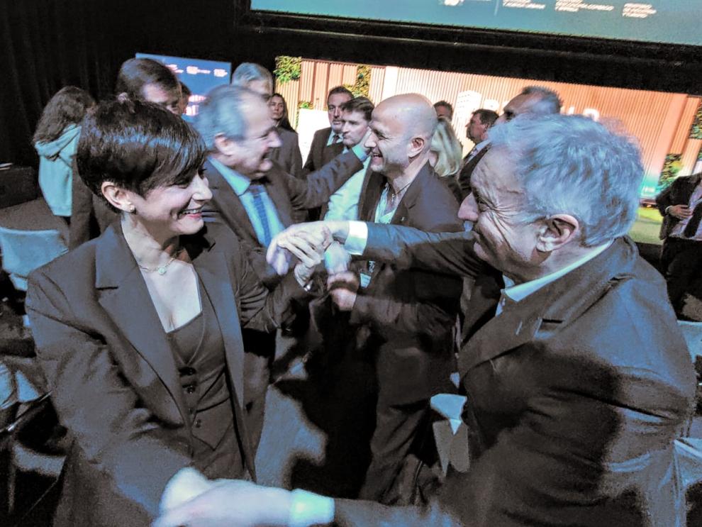 El consejero Octavio López y la ministra de Vivienda, Isabel Rodríguez, se han saludado y departido sobre la situación de la vivienda en Aragón.