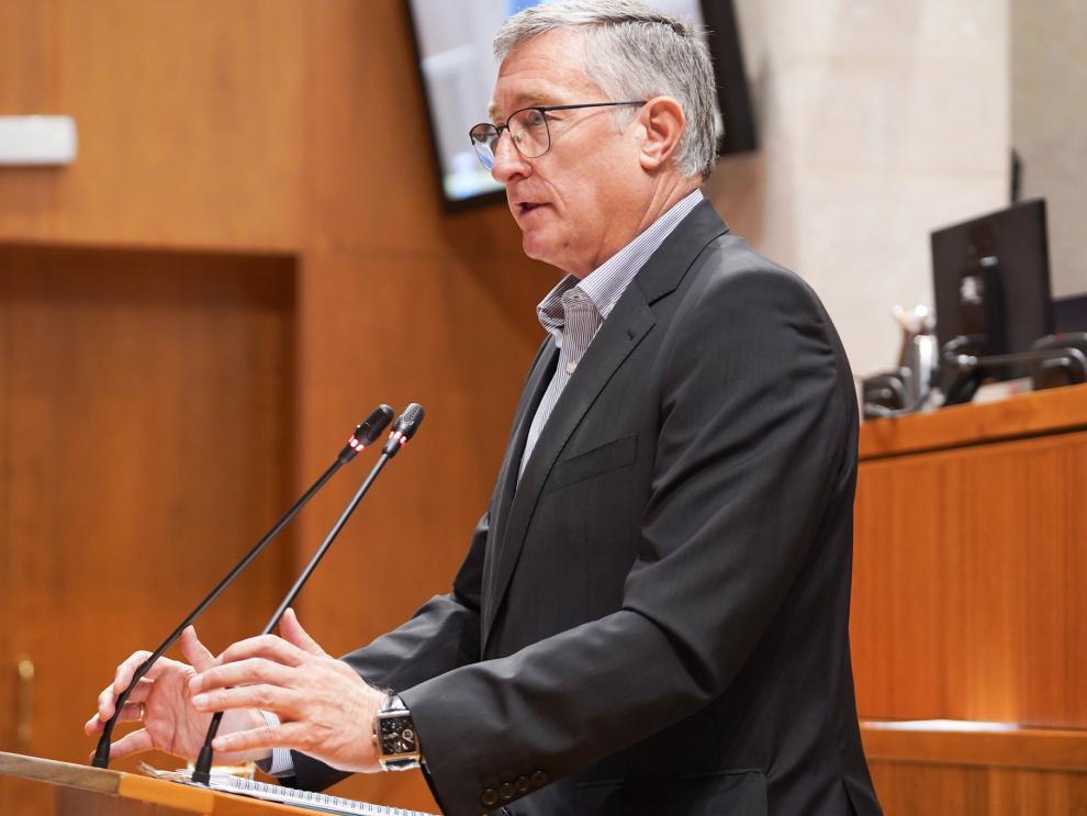 El consejero de Medio Ambiente y Turismo, Manuel Blasco, en su intervención en las Cortes.