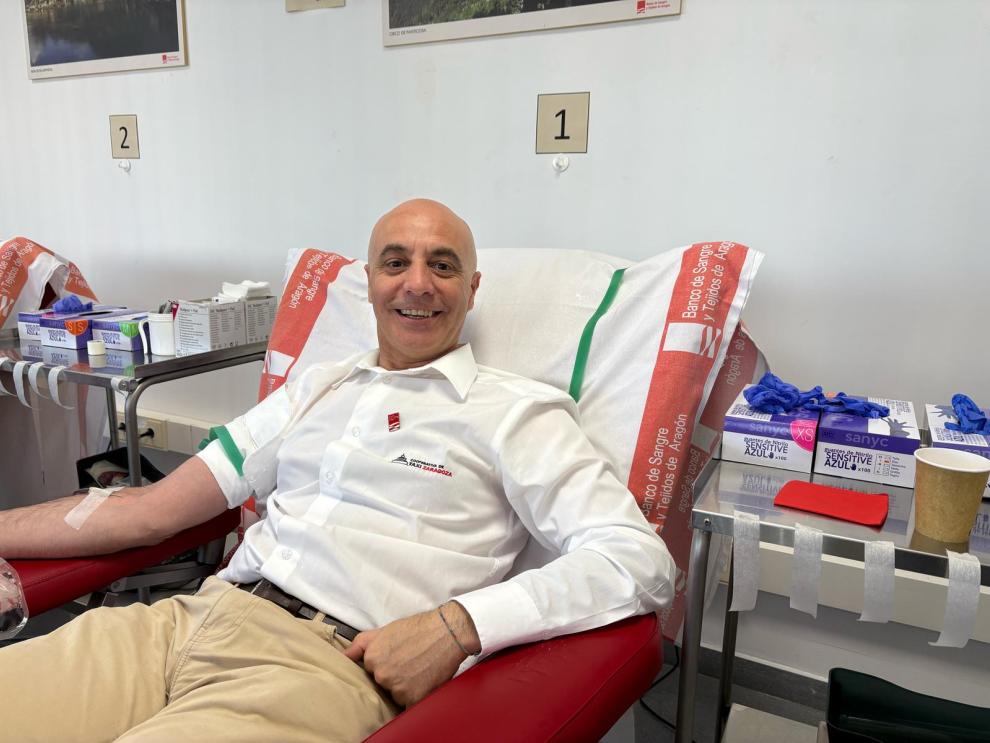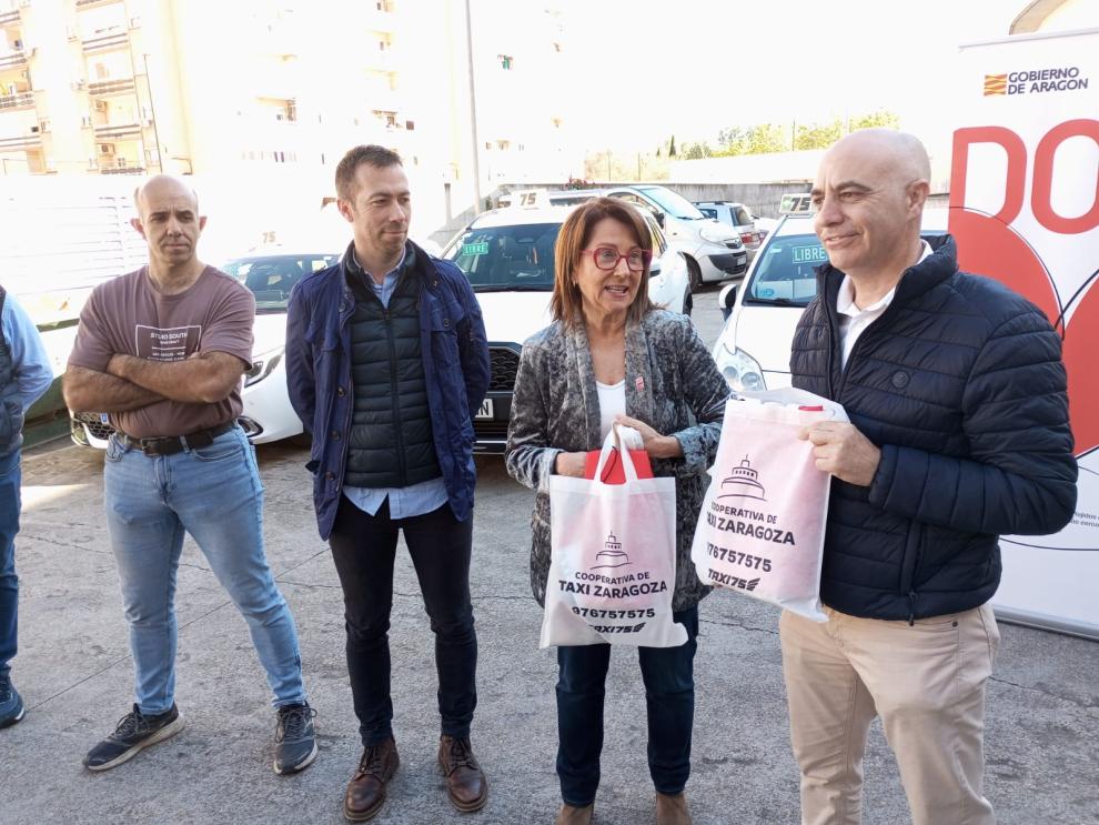 La directora del Banco de Sangre de Aragón, Rosa Plantagenet-Whyte, y el consejero de la Cooperativa de taxis de Zaragoza, Héctor Sánchez.