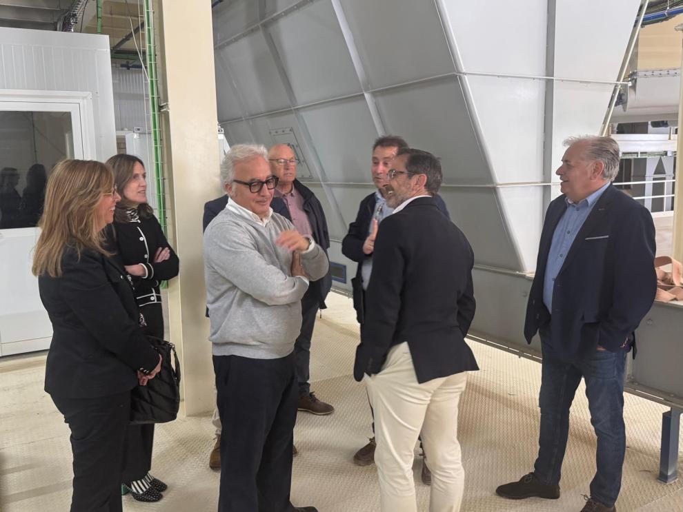 El consejero de Agricultura y las dos directoras generales durante la visita a la fábrica de piensos del Grupo Arco Iris