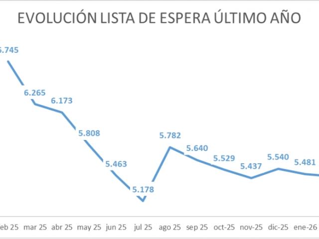 La lista de espera quirúrgica finaliza en febrero de 2026 con 5.453 pacientes, un descenso de 28 personas